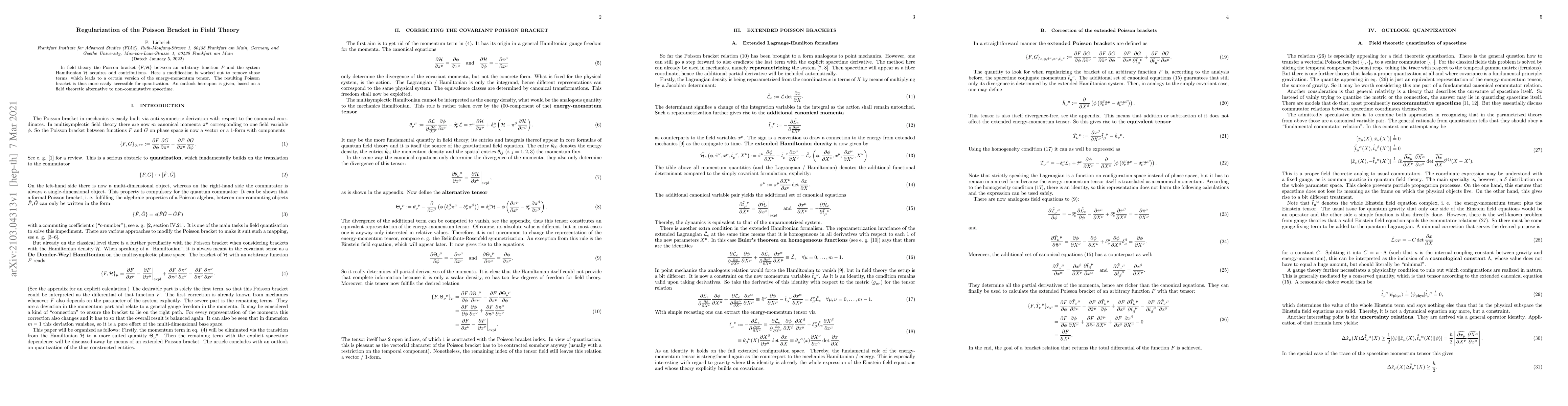 Researchers modified the Poisson bracket in field theory to remove odd contributions, leading to a more accessible energy-momentum tensor for quantization. This innovation has implications for understanding non-commutative spacetime.