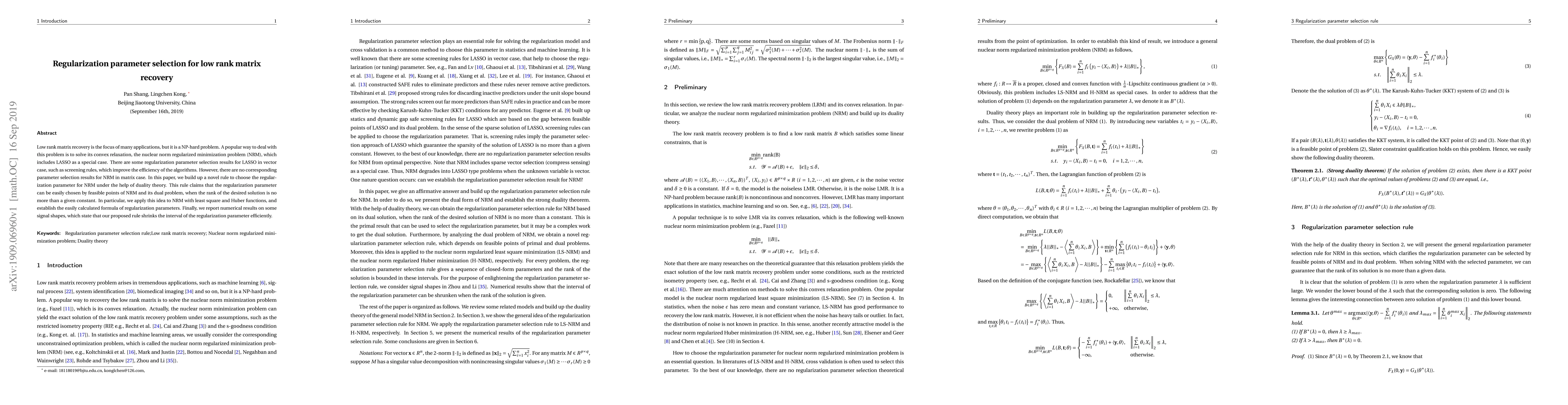 Low rank matrix recovery is the focus of many applications, but it is a NP-hard problem. A popular way to deal with this problem is to solve its convex relaxation, the nuclear norm regularized minimization problem (NRM), which includes LASSO as a special case. There are some regularization parameter selection results for LASSO in vector case, such as screening rules, which improve the efficiency of the algorithms. However, there are no corresponding parameter selection results for NRM in matrix case. In this paper, we build up a novel rule to choose the regularization parameter for NRM under the help of duality theory. This rule claims that the regularization parameter can be easily chosen by feasible points of NRM and its dual problem, when the rank of the desired solution is no more than a given constant. In particular, we apply this idea to NRM with least square and Huber functions, and establish the easily calculated formula of regularization parameters. Finally, we report numerical results on some signal shapes, which state that our proposed rule shrinks the interval of the regularization parameter efficiently.