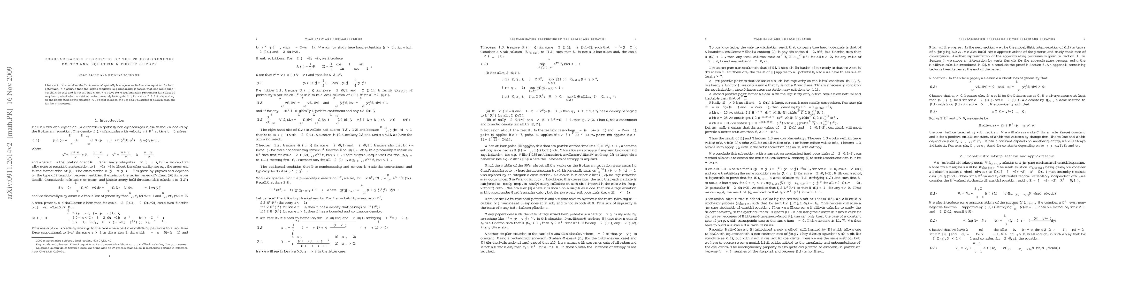 Summary: This paper investigates the 2D homogeneous Boltzmann equation for hard potentials without cutoff, proving that solutions belong to $H^r$ for certain $r$ values, depending on the equation parameters, using a specialized Malliavin calculus for jump processes. The initial condition is a non-Dirac mass probability measure with exponential moments.