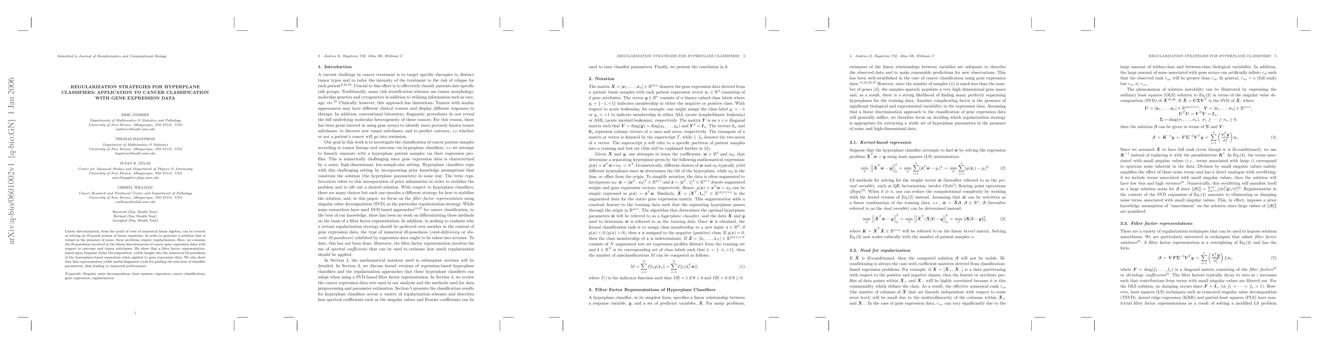 This paper explores how regularization strategies can improve cancer classification using gene expression data, highlighting the importance of considering numerical ill-posedness in hyperplane classifiers.