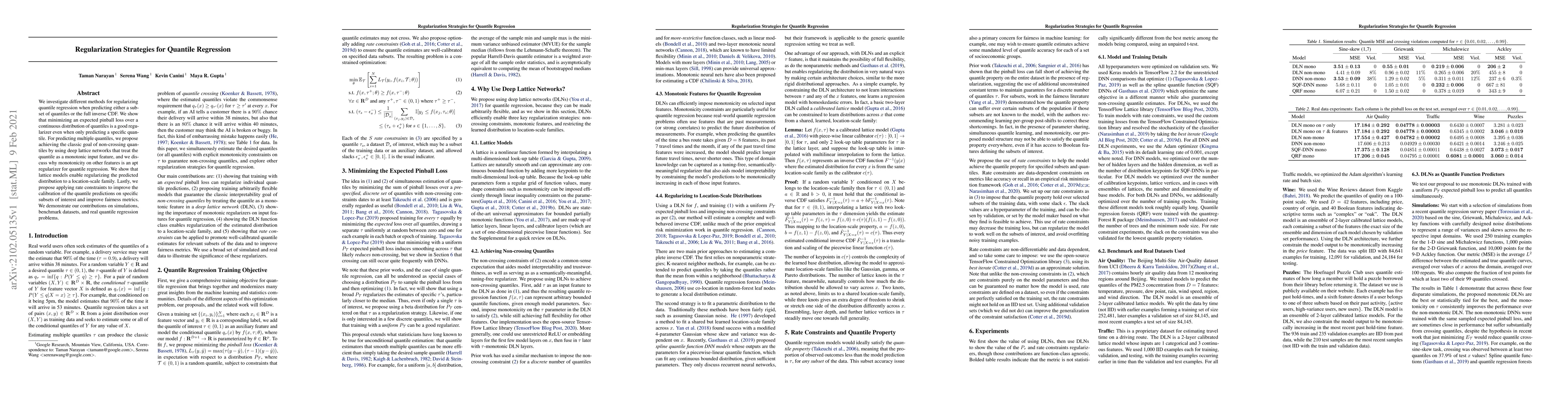 This paper explores regularization strategies for quantile regression, demonstrating that minimizing an expected pinball loss is effective for specific quantiles and proposing deep lattice networks to ensure non-crossing quantiles for multiple quantiles. It also suggests rate constraints to enhance calibration and fairness for specific subsets.