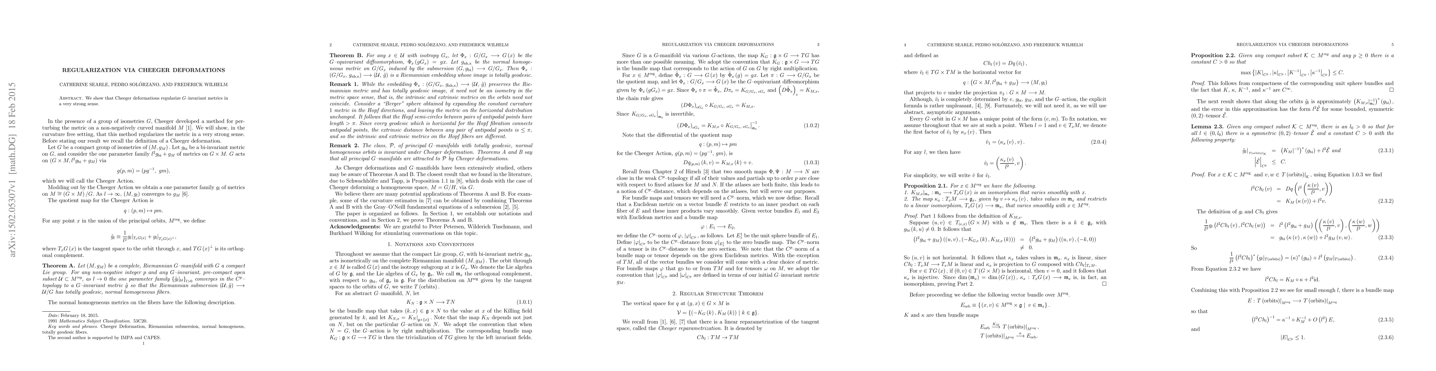 Researchers show that Cheeger deformations can strongly regulate $G$--invariant metrics, improving their stability and properties.