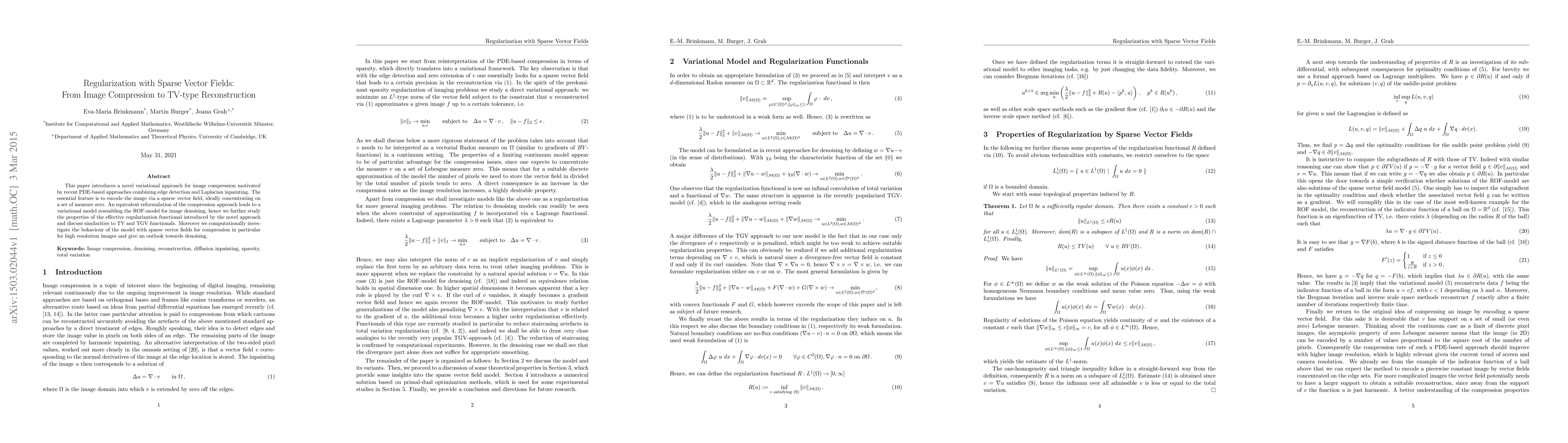 A new approach for image compression is introduced using a sparse vector field, which concentrates on a set of measure zero, leading to similarities with TV and TGV functionals in terms of regularization properties.