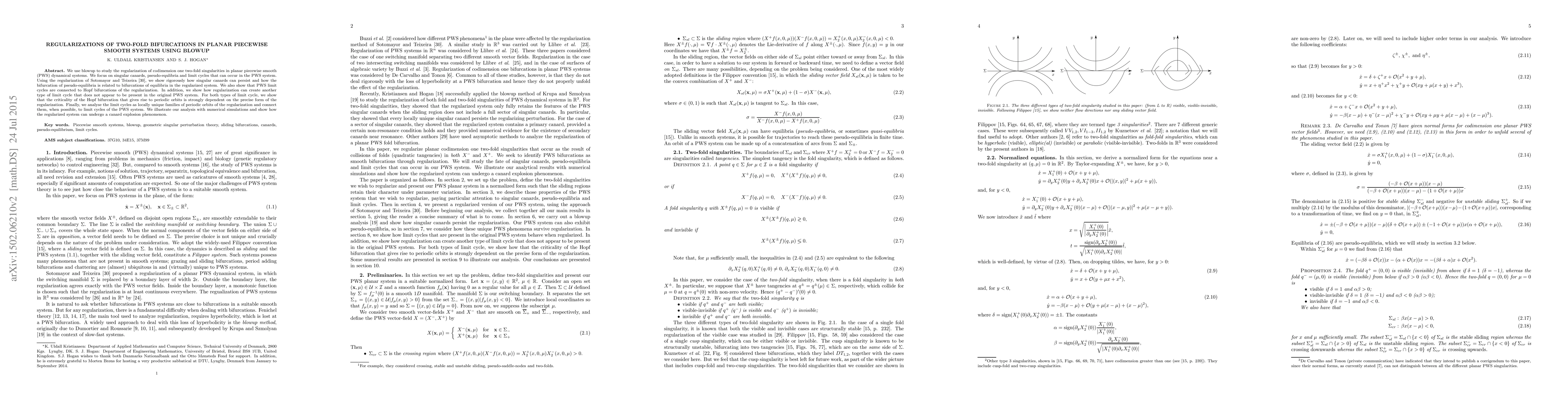 This paper studies the regularization of codimension one two-fold bifurcations in planar piecewise smooth dynamical systems via blowup, focusing on singular canards, pseudo-equilibria, and limit cycles. It demonstrates how regularization can create new limit cycles and affects the criticality of Hopf bifurcations, illustrating these findings with numerical simulations and the canard explosion phenomenon.