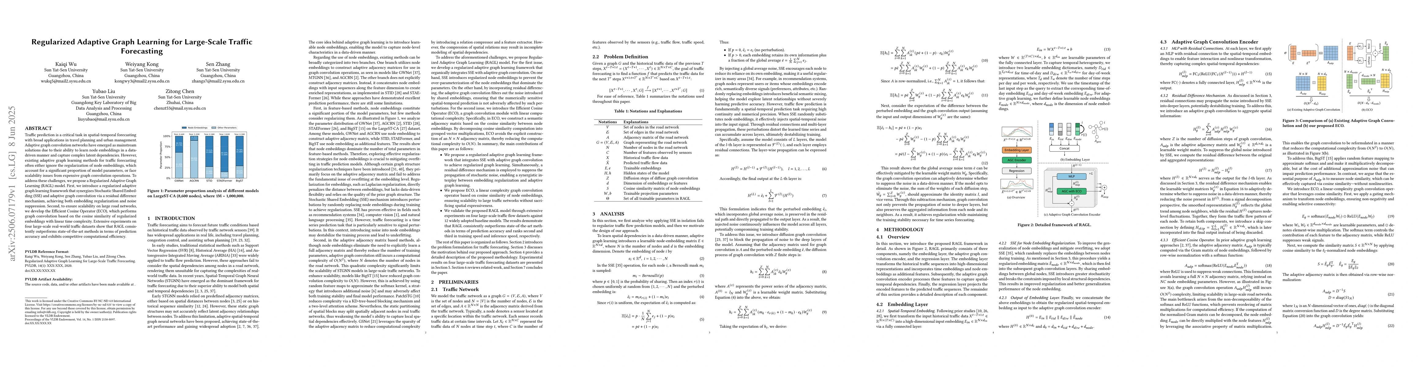 Researchers developed a new method called Regularized Adaptive Graph Learning for traffic forecasting that improves accuracy and efficiency on large-scale road networks.