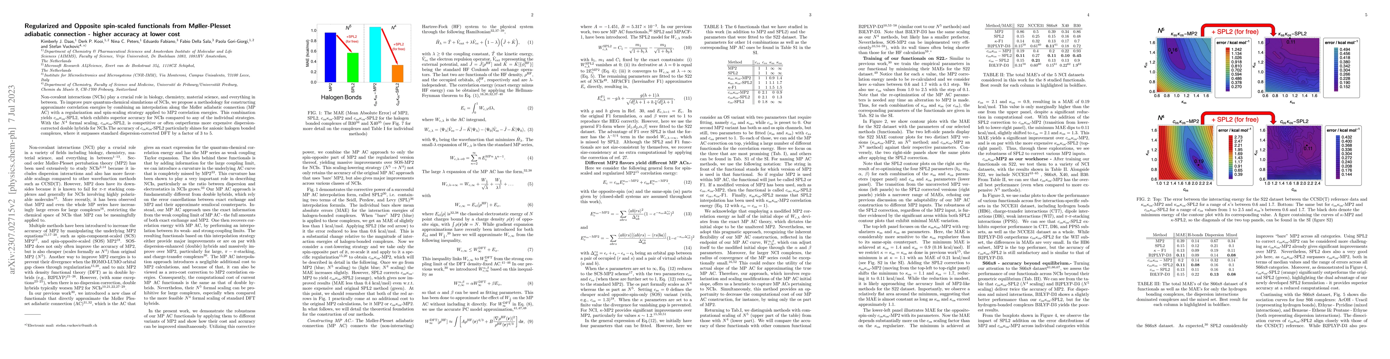 Non-covalent interactions (NCIs) play a crucial role in biology, chemistry, material science, and everything in between. To improve pure quantum-chemical simulations of NCIs, we propose a methodology for constructing approximate correlation energies by combining an interpolation along the M{\o}ller adiabatic connection (MP AC) with a regularization and spin-scaling strategy applied to MP2 correlation energies. This combination yields $c_{\rm os}\kappa_{\rm os}$-SPL2, which exhibits superior accuracy for NCIs compared to any of the individual strategies. With the $N^4$ formal scaling, $c_{\rm os}\kappa_{\rm os}$-SPL2, is competitive or often outperforms more expensive dispersion-corrected double hybrids for NCIs.The accuracy of $c_{\rm os}\kappa_{\rm os}$-SPL2 particularly shines for anionic halogen bonded complexes, where it surpasses standard dispersion-corrected DFT by a factor of 3 to 5.