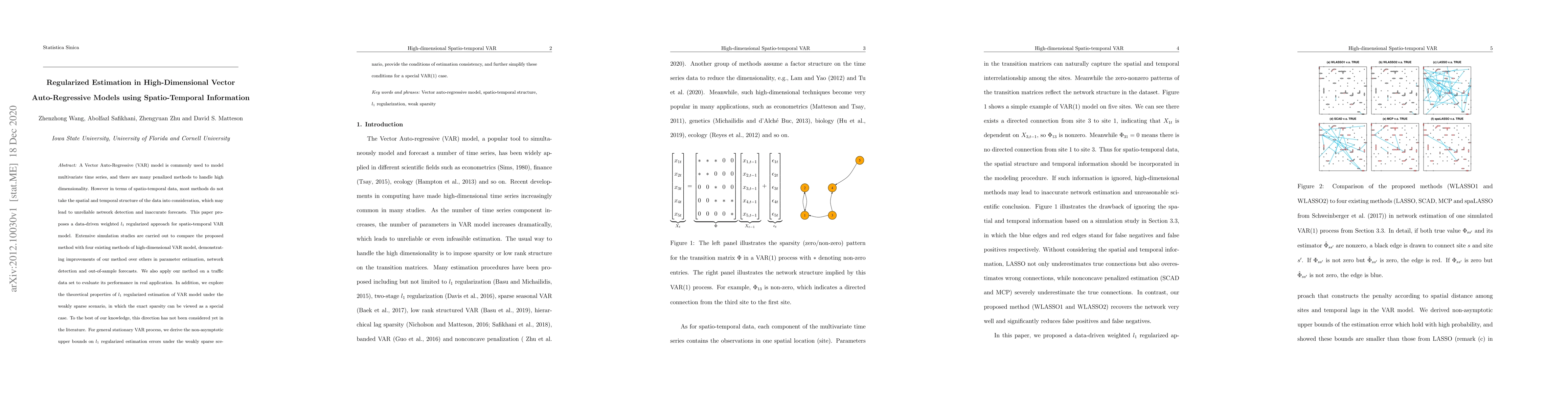 This paper proposes a weighted l1 regularized approach for high-dimensional spatio-temporal VAR models, incorporating spatial and temporal structures to improve network detection and forecasts. Simulation studies and real traffic data applications demonstrate the method's superior performance, and theoretical properties are derived for weakly sparse scenarios, offering new insights into VAR model estimation.