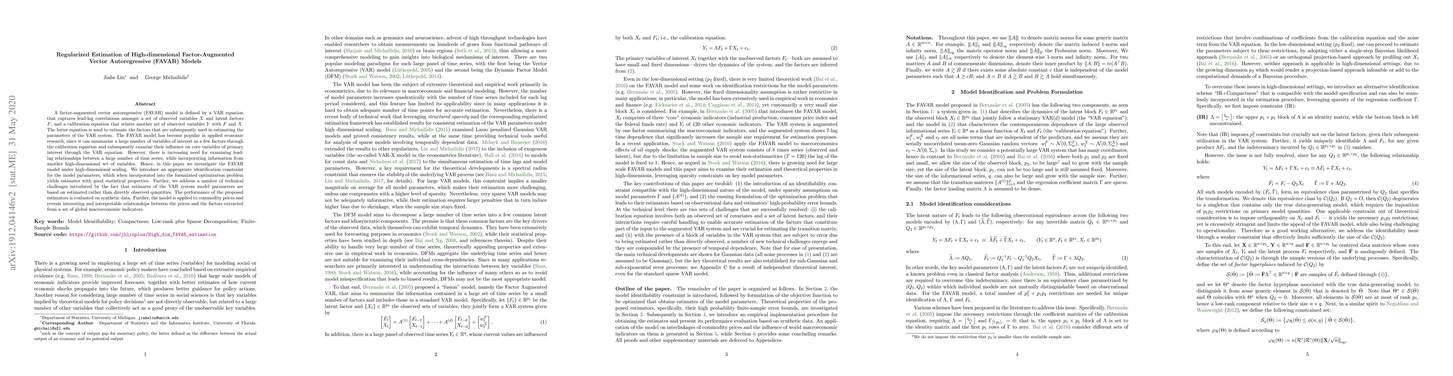 The novelty of this work lies in its extension of FAVAR models to high-dimensional settings, providing a method to accurately estimate transition matrices of VAR systems even when one block of observations (factors) is an estimated quantity.