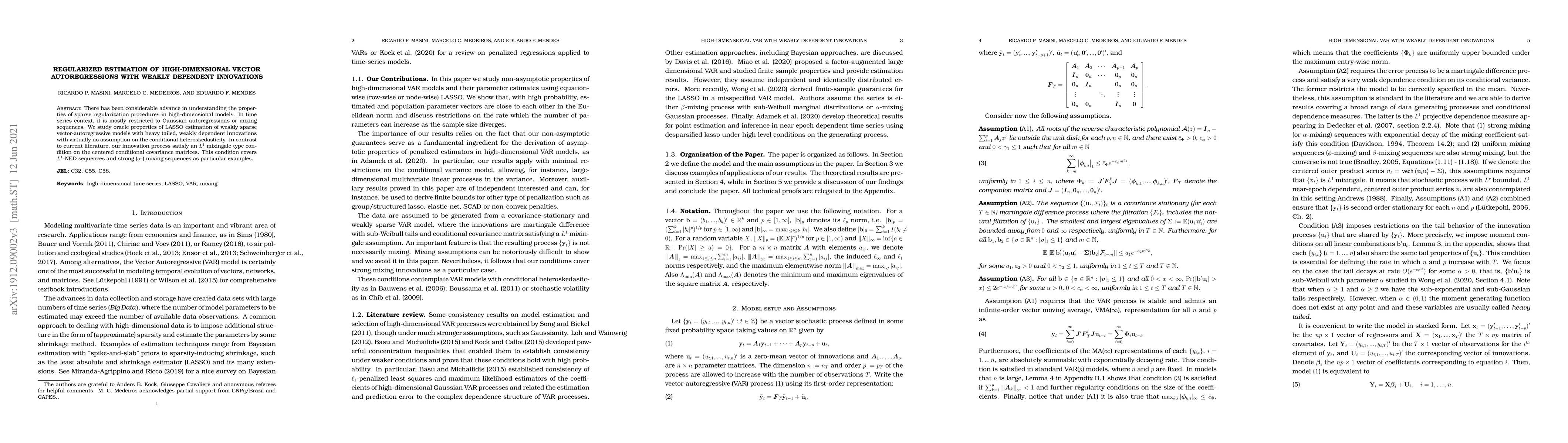 There has been considerable advance in understanding the properties of sparse regularization procedures in high-dimensional models. In time series context, it is mostly restricted to Gaussian autoregressions or mixing sequences. We study oracle properties of LASSO estimation of weakly sparse vector-autoregressive models with heavy tailed, weakly dependent innovations with virtually no assumption on the conditional heteroskedasticity. In contrast to current literature, our innovation process satisfy an $L^1$ mixingale type condition on the centered conditional covariance matrices. This condition covers $L^1$-NED sequences and strong ($\alpha$-) mixing sequences as particular examples.