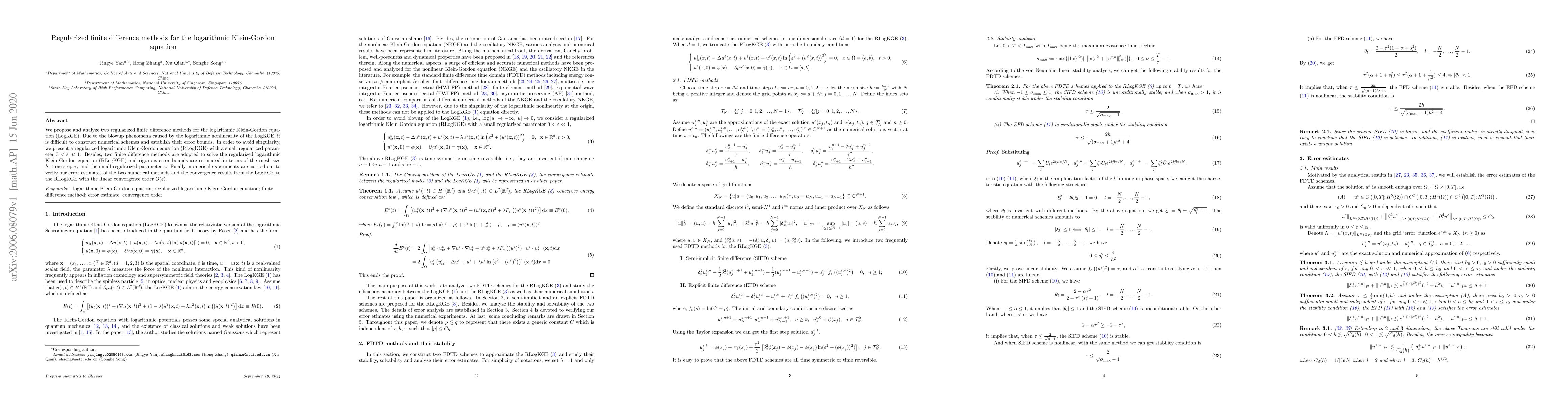 This paper proposes and analyzes two regularized finite difference methods for solving the logarithmic Klein-Gordon equation, addressing the blowup phenomena caused by its nonlinearity. Rigorous error bounds are established, and numerical experiments confirm the methods' convergence and error estimates.