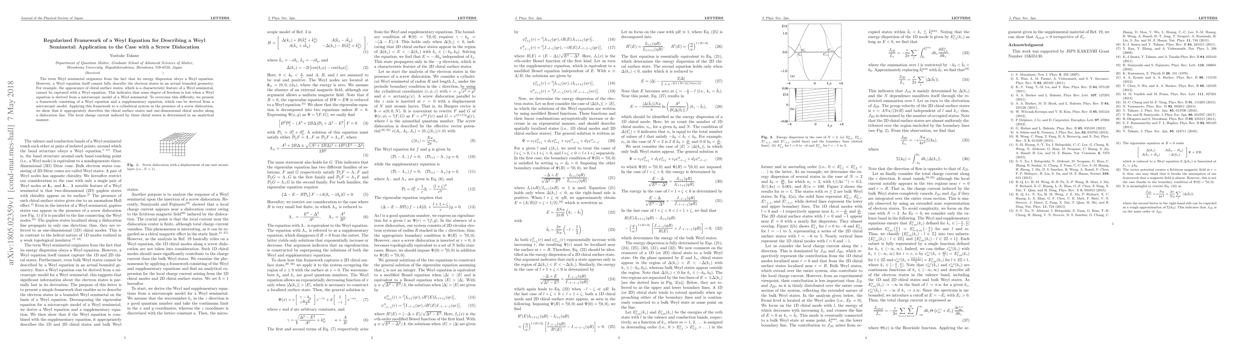 The term Weyl semimetal originates from the fact that its energy dispersion obeys a Weyl equation. However, a Weyl equation itself cannot fully describe the electron states in an actual bounded geometry. For example, the appearance of chiral surface states, which is a characteristic feature of a Weyl semimetal, cannot be captured with a Weyl equation. This indicates that some degree of freedom is lost when a Weyl equation is derived from a microscopic model of a Weyl semimetal. To overcome this difficulty, we present a framework consisting of a Weyl equation and a supplementary equation, which can be derived from a microscopic model. Applying this framework to a cylindrical system in the presence of a screw dislocation, we show that it appropriately describes the chiral surface states and one-dimensional chiral modes along a dislocation line. The local charge current induced by these chiral states is determined in an analytical manner.