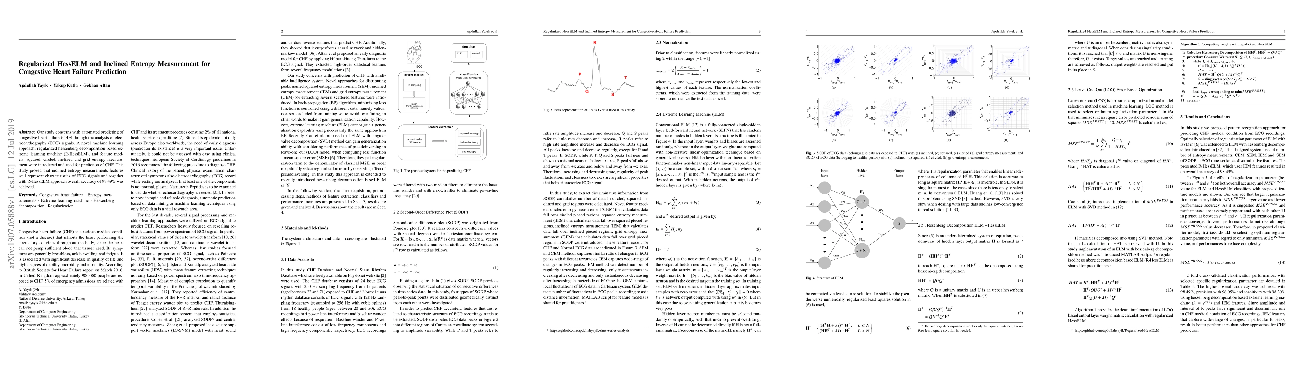 This study introduces a novel machine learning method, R-HessELM, combined with inclined entropy measurements for predicting congestive heart failure from ECG signals, achieving an overall accuracy of 98.49%. Inclined entropy is shown to effectively represent ECG signal characteristics.