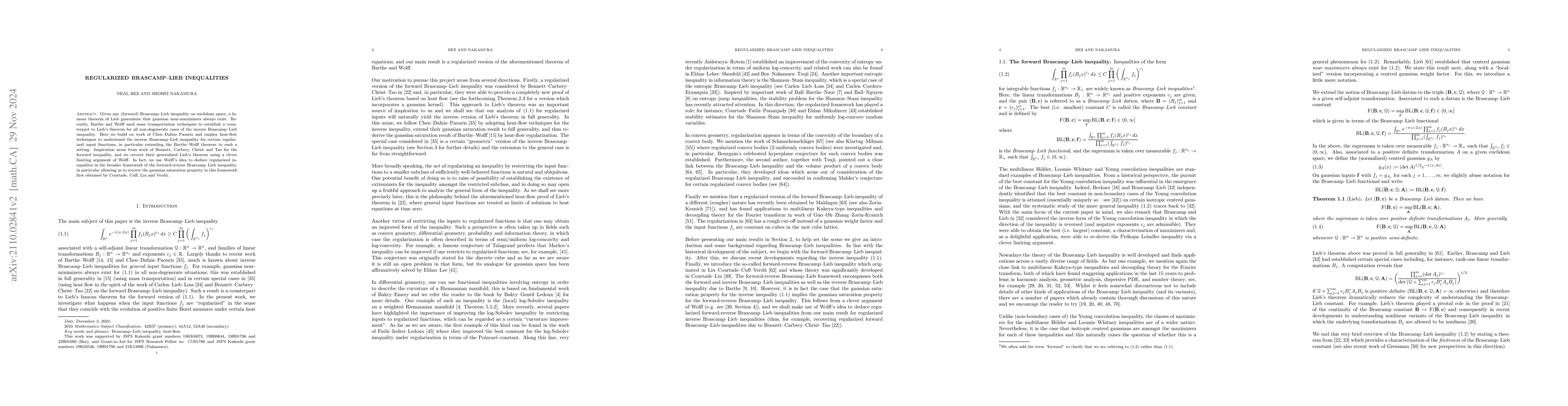Given any (forward) Brascamp--Lieb inequality on euclidean space, a famous theorem of Lieb guarantees that gaussian near-maximizers always exist. Recently, Barthe and Wolff used mass transportation techniques to establish a counterpart to Lieb's theorem for all non-degenerate cases of the inverse Brascamp--Lieb inequality. Here we build on work of Chen--Dafnis--Paouris and employ heat-flow techniques to understand the inverse Brascamp--Lieb inequality for certain regularized input functions, in particular extending the Barthe--Wolff theorem to such a setting. Inspiration arose from work of Bennett, Carbery, Christ and Tao for the forward inequality, as well as Wolff's surprising observation that the gaussian saturation property for the inverse Brascamp--Lieb inequality implies the gaussian saturation property for both the forward Brascamp--Lieb inequality and Barthe's reverse Brascamp--Lieb inequality.