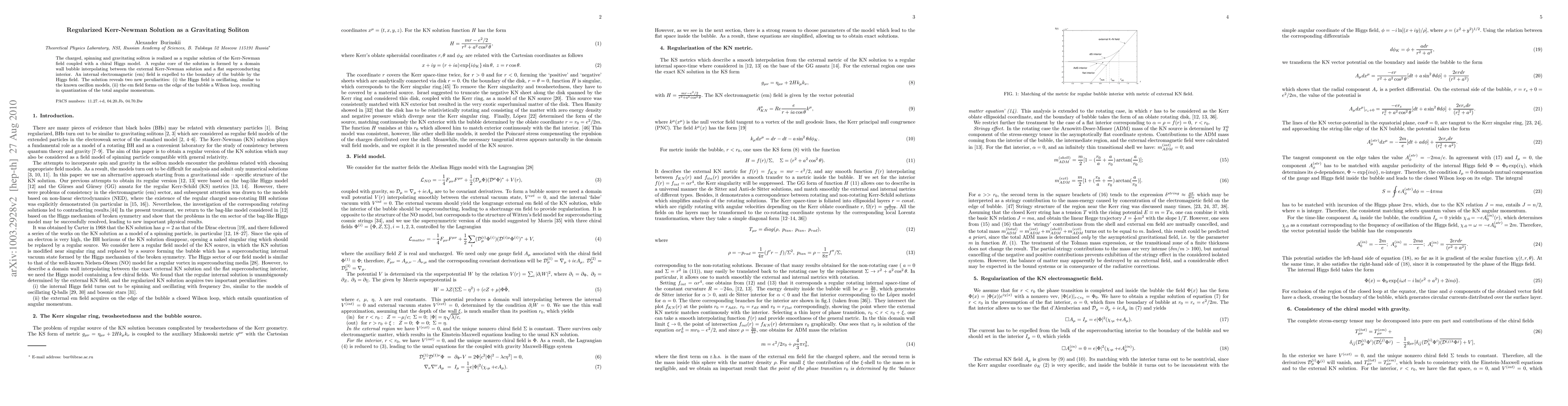 The charged, spinning and gravitating soliton is realized as a regular solution of the Kerr-Newman field coupled with a chiral Higgs model. A regular core of the solution is formed by a domain wall bubble interpolating between the external Kerr-Newman solution and a flat superconducting interior. An internal electromagnetic (em) field is expelled to the boundary of the bubble by the Higgs field. The solution reveals two new peculiarities: (i) the Higgs field is oscillating, similar to the known oscillon models, (ii) the em field forms on the edge of the bubble a Wilson loop, resulting in quantization of the total angular momentum.