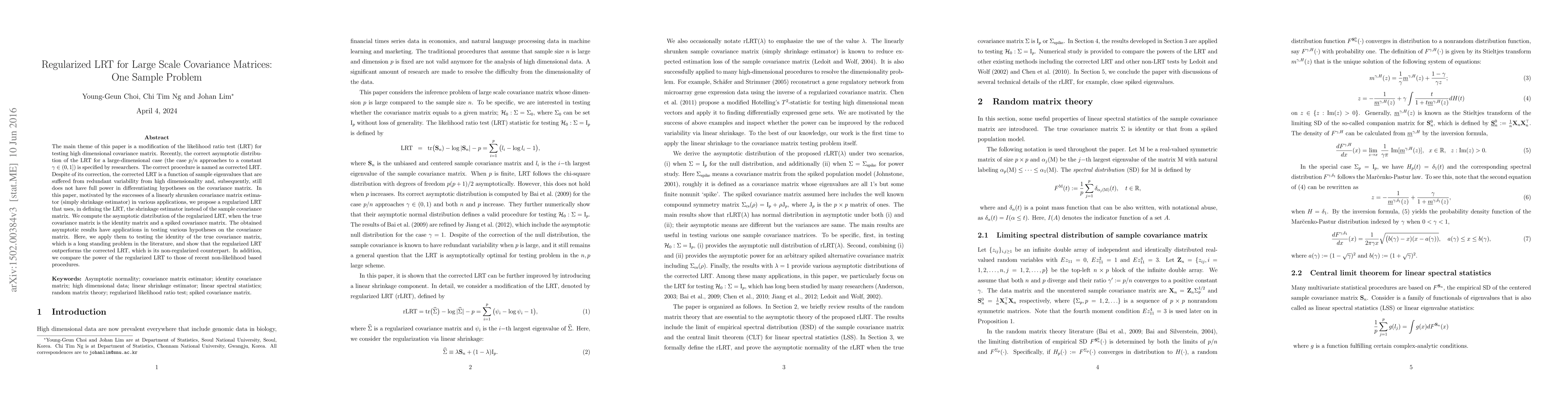 This paper proposes a regularized likelihood ratio test (LRT) for high-dimensional covariance matrices, using a shrinkage estimator to improve hypothesis testing. It demonstrates that the regularized LRT outperforms the corrected LRT and other non-likelihood based procedures in differentiating hypotheses on the covariance matrix.