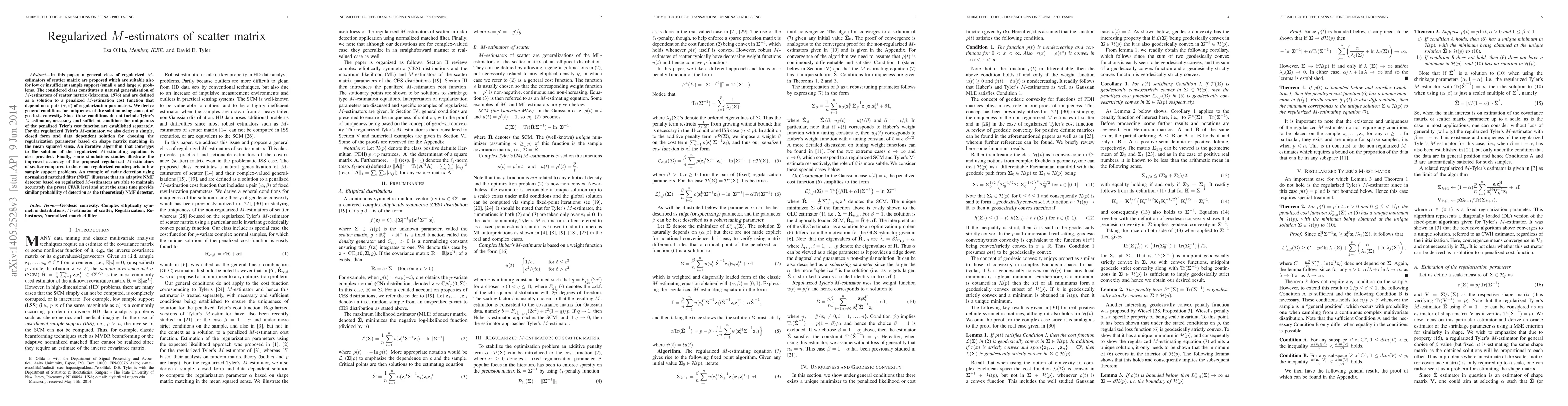 This paper introduces a new class of regularized $M$-estimators for scatter matrices, suitable for scenarios with low sample sizes and high dimensions. It proposes a penalized $M$-estimation cost function with parameters $(\alpha, \beta)$ and establishes conditions for uniqueness, including a distinct analysis for the regularized Tyler's $M$-estimator. An iterative algorithm is provided for finding solutions, and simulation results show improved accuracy over non-regularized methods, with applications in radar detection maintaining detection probability while preserving constant false alarm rates.
