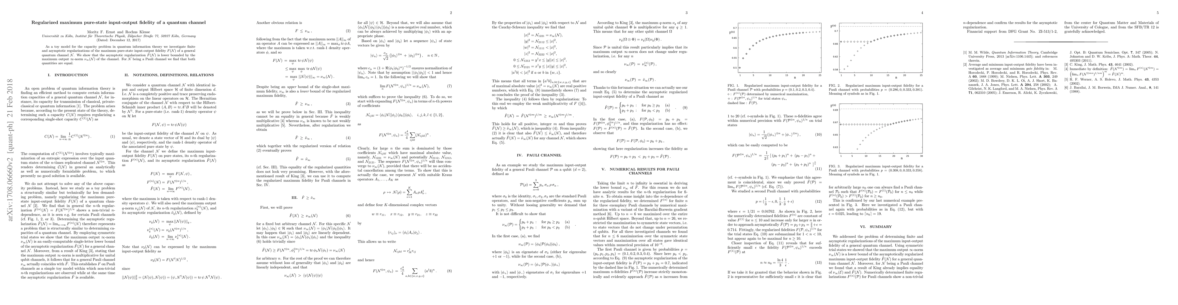 As a toy model for the capacity problem in quantum information theory we investigate finite and asymptotic regularizations of the maximum pure-state input-output fidelity $F(\cal N$) of a general quantum channel $\cal N$. We show that the asymptotic regularization $\tilde F(\cal N$) is lower bounded by the maximum output $\infty$-norm $\nu_\infty(\cal N)$ of the channel. For $\cal N$ being a Pauli channel we find that both quantities are equal.