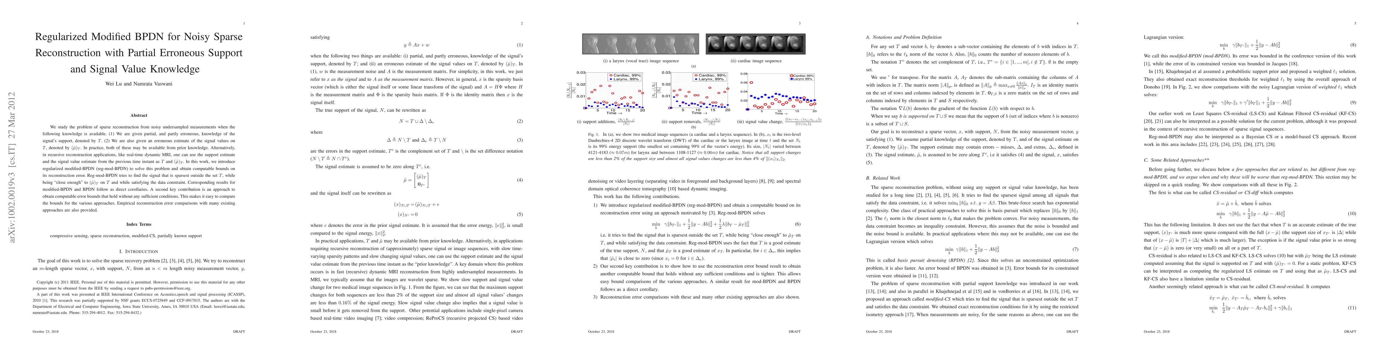 This paper proposes a regularized modified-BPDN (reg-mod-BPDN) method for sparse reconstruction from noisy undersampled measurements, leveraging partial and erroneous support knowledge and signal value estimates. It provides computable error bounds without sufficient conditions, facilitating easy comparison with other methods.
