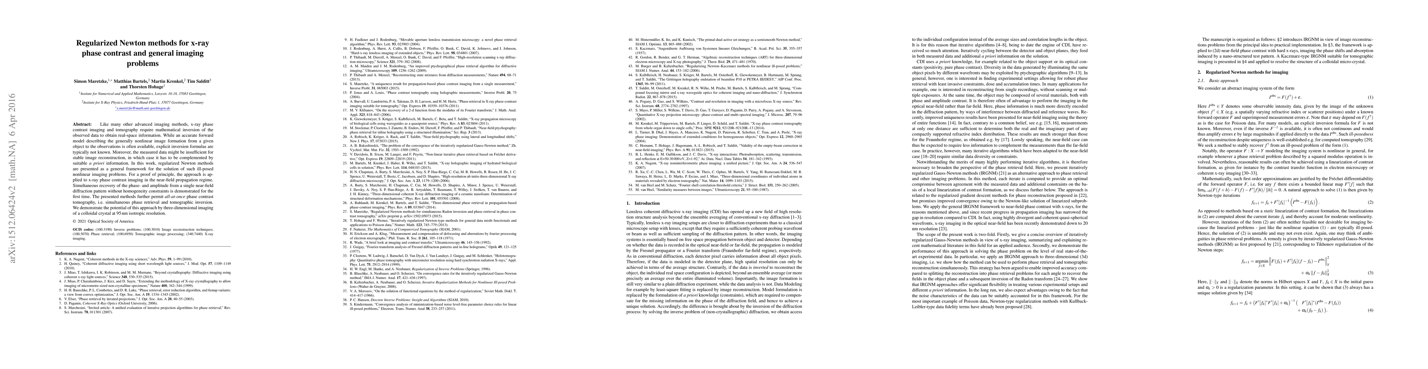 This paper introduces regularized Newton methods for solving ill-posed nonlinear imaging problems, particularly in x-ray phase contrast imaging. It demonstrates the simultaneous recovery of phase and amplitude from near-field diffraction patterns and achieves high-resolution 3D imaging of a colloidal crystal.