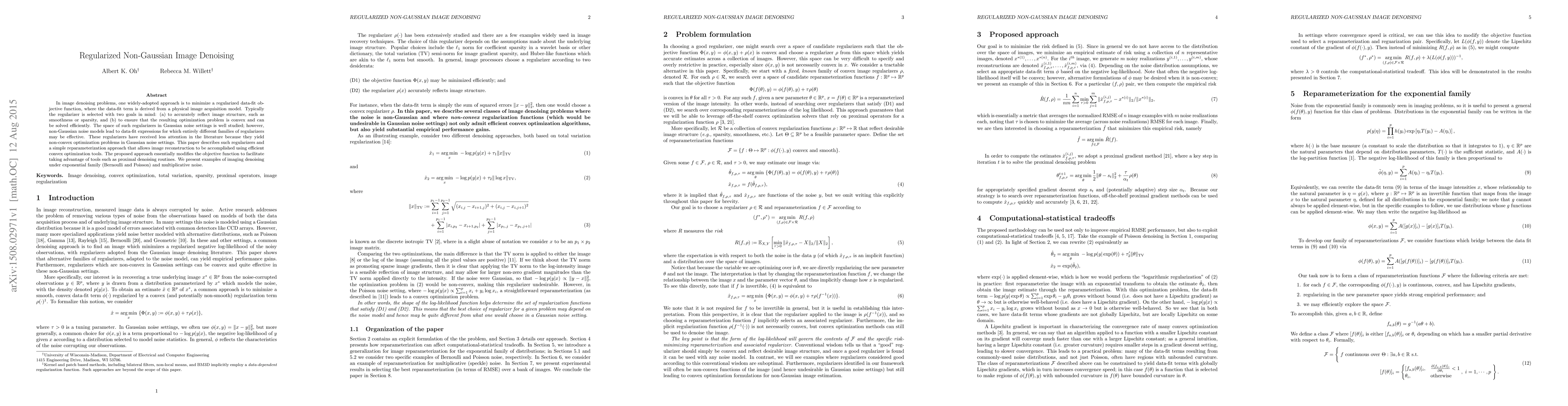 Researchers develop new regularizers for image denoising in non-Gaussian noise settings, enabling efficient convex optimization using tools like proximal denoising routines.