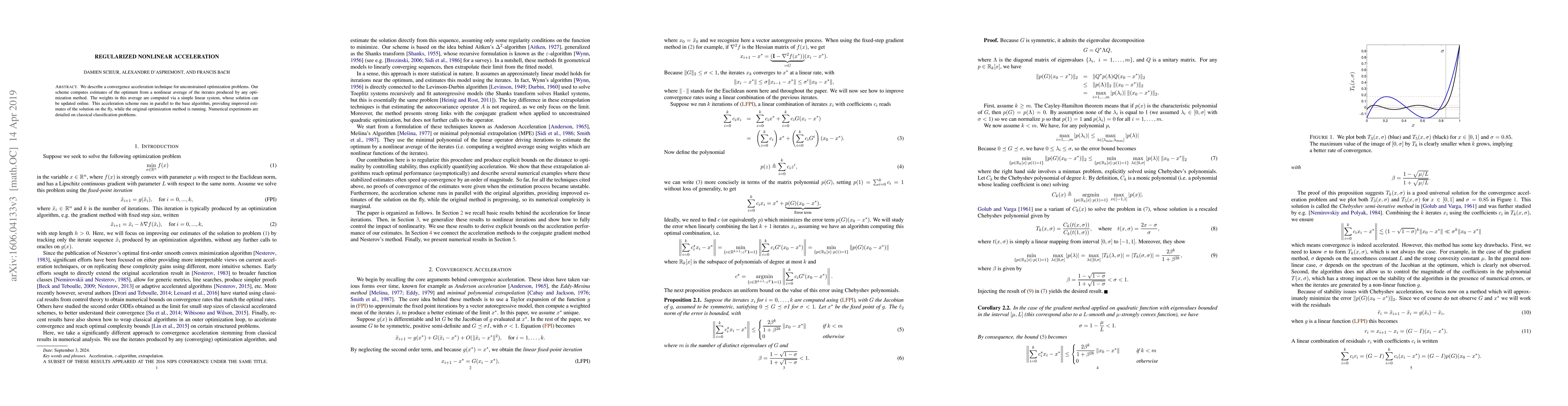 This paper introduces a convergence acceleration technique for optimization problems that uses a nonlinear average of iterates to estimate the optimum. The method runs in parallel with the original optimization algorithm, providing real-time improved solution estimates, as demonstrated through numerical experiments on classification tasks.