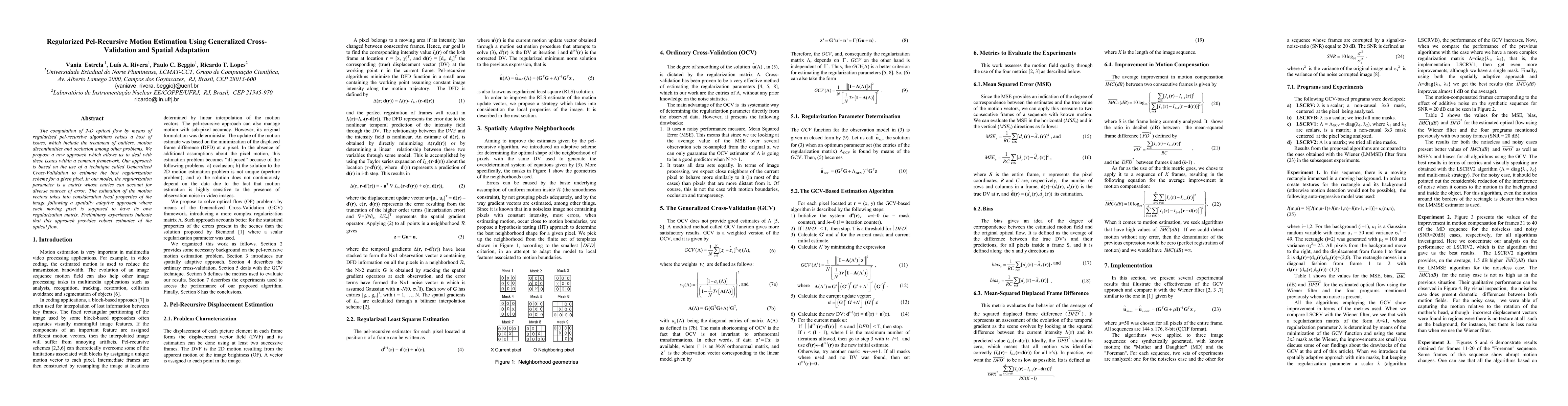 The computation of 2-D optical flow by means of regularized pel-recursive algorithms raises a host of issues, which include the treatment of outliers, motion discontinuities and occlusion among other problems. We propose a new approach which allows us to deal with these issues within a common framework. Our approach is based on the use of a technique called Generalized Cross-Validation to estimate the best regularization scheme for a given pixel. In our model, the regularization parameter is a matrix whose entries can account for diverse sources of error. The estimation of the motion vectors takes into consideration local properties of the image following a spatially adaptive approach where each moving pixel is supposed to have its own regularization matrix. Preliminary experiments indicate that this approach provides robust estimates of the optical flow.