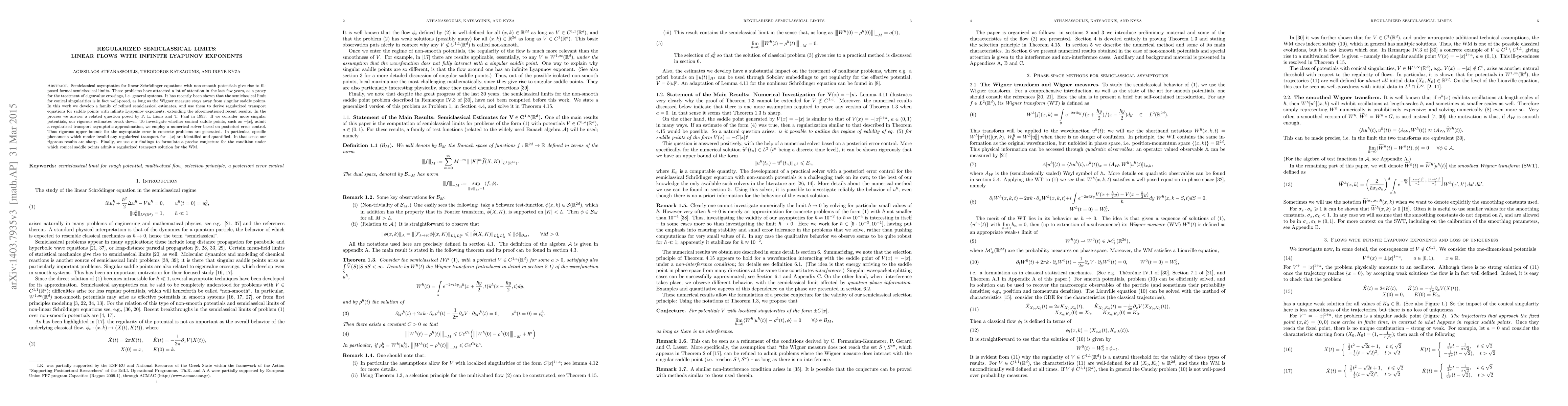 This paper develops refined semiclassical estimates to derive regularized transport equations for linear flows with infinite Lyapunov exponents, addressing ill-posed semiclassical limits in Schrödinger equations. It rigorously identifies conditions under which conical singularities allow for such approximations, and uses numerical methods to quantify failure cases, ultimately proposing a conjecture for when conical saddle points can be regularized.