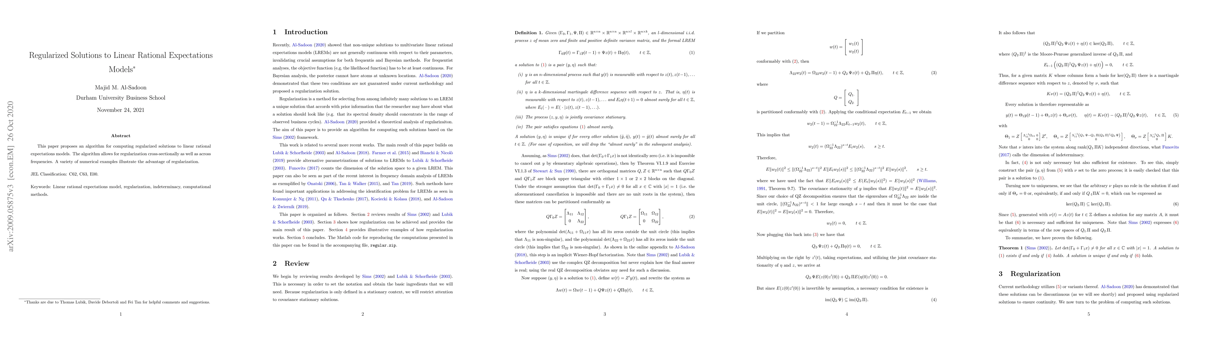 This paper proposes an algorithm for computing regularized solutions to linear rational expectations models, highlighting its advantage through numerical examples.