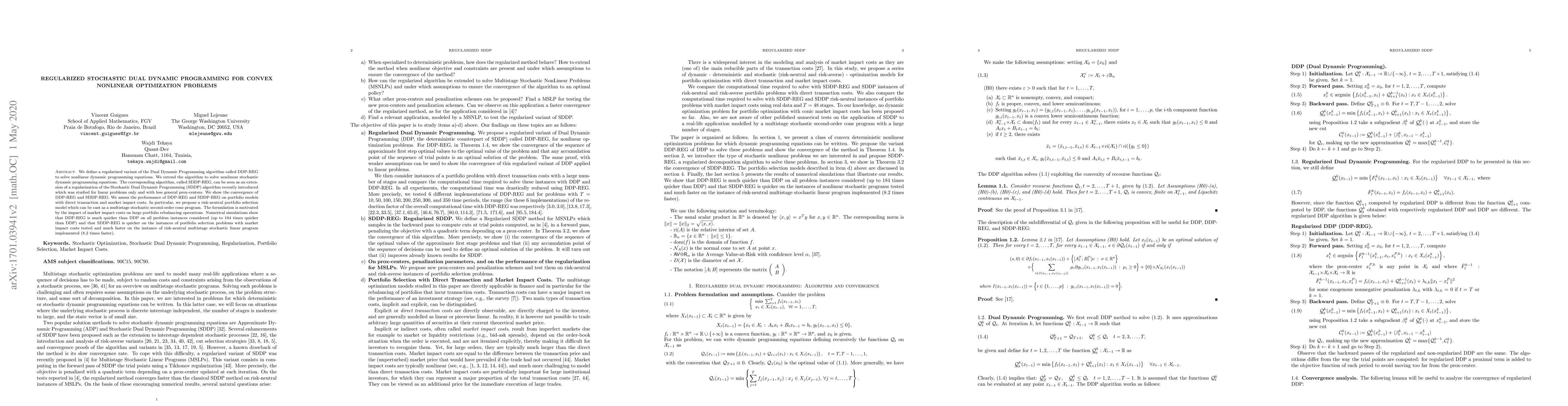 This paper introduces REDDP and SDDP-REG, regularized variants of Dual Dynamic Programming and Stochastic Dual Dynamic Programming, respectively, to solve nonlinear dynamic programming and stochastic dynamic programming problems. Numerical results show significant improvements in speed over traditional methods, especially in portfolio selection models with market impact costs.