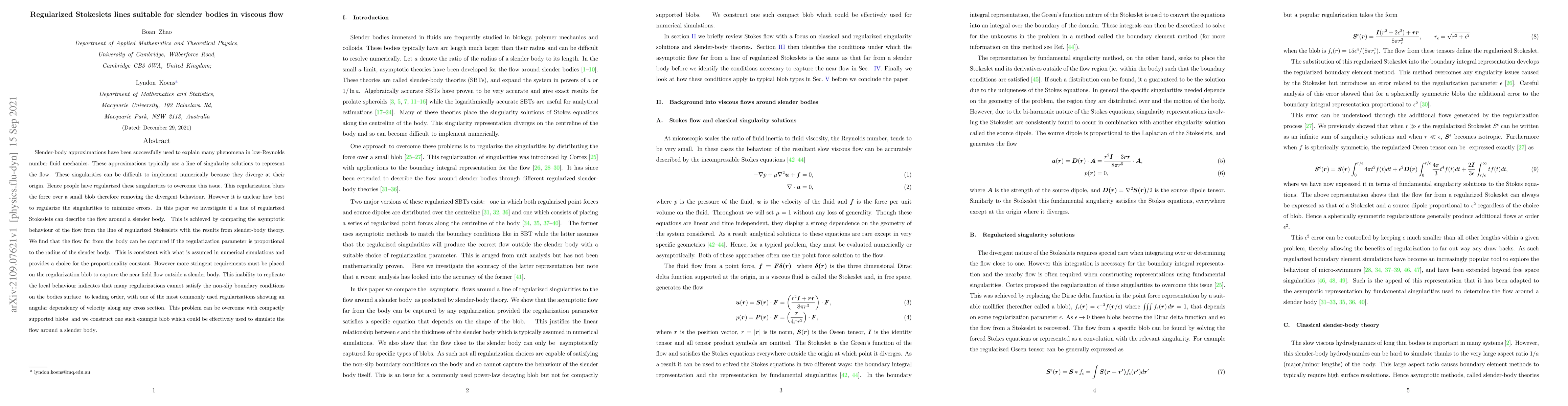 This paper investigates the use of regularized Stokeslets to model the flow around slender bodies in viscous fluids, finding that a line of regularized Stokeslets can describe the far-field flow if the regularization parameter scales with the body's radius. However, it highlights limitations in capturing near-field flow and non-slip boundary conditions, proposing compactly supported blobs as a solution.