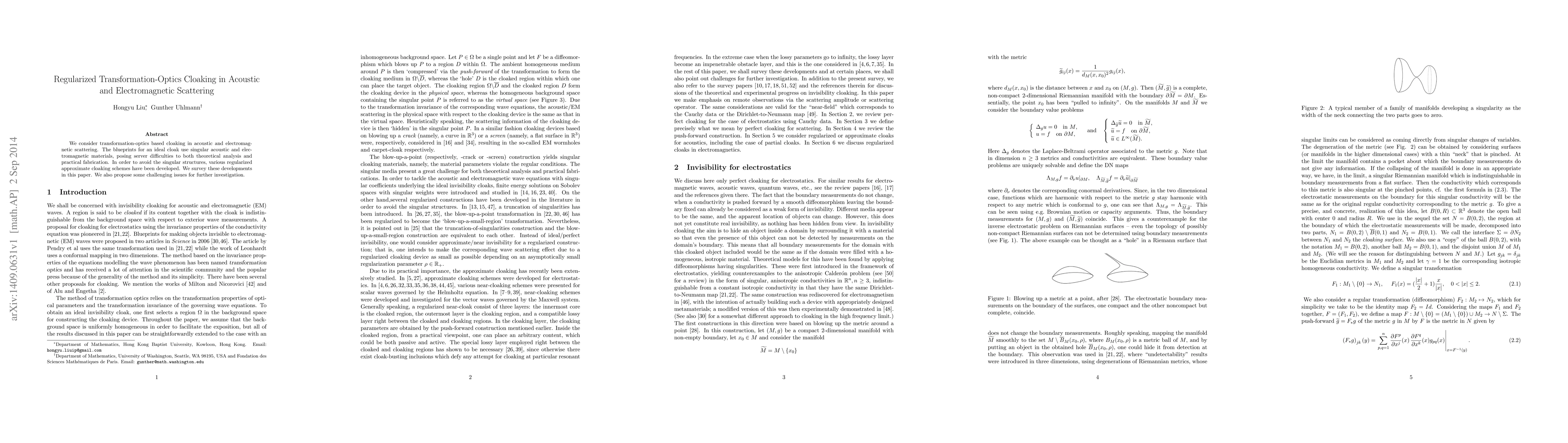 This paper surveys various regularized transformation-optics cloaking methods to avoid singular materials in acoustic and electromagnetic scattering, proposing new challenges for future research.