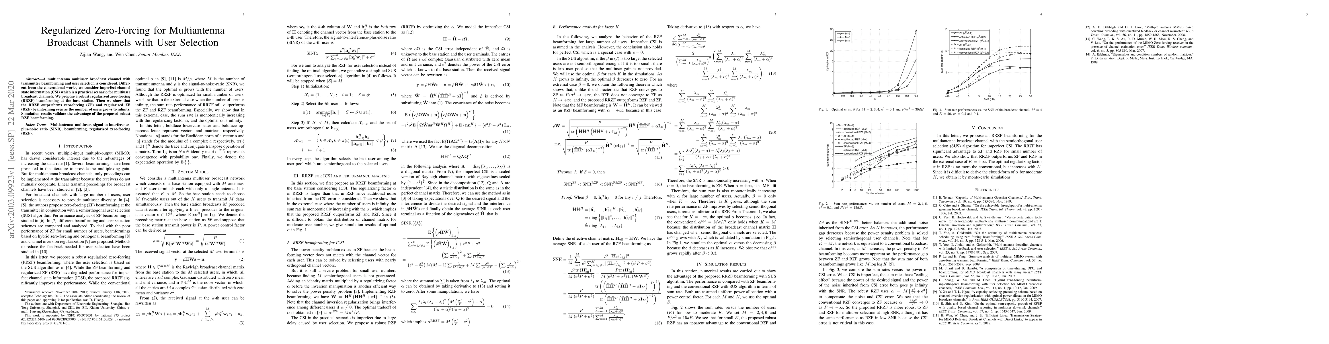 This paper proposes a robust regularized zero-forcing (RRZF) beamforming technique for multiantenna broadcast channels with imperfect channel state information (CSI) and user selection. The RRZF method outperforms conventional zero-forcing and regularized ZF methods, even as the number of users increases, as validated by simulation results.