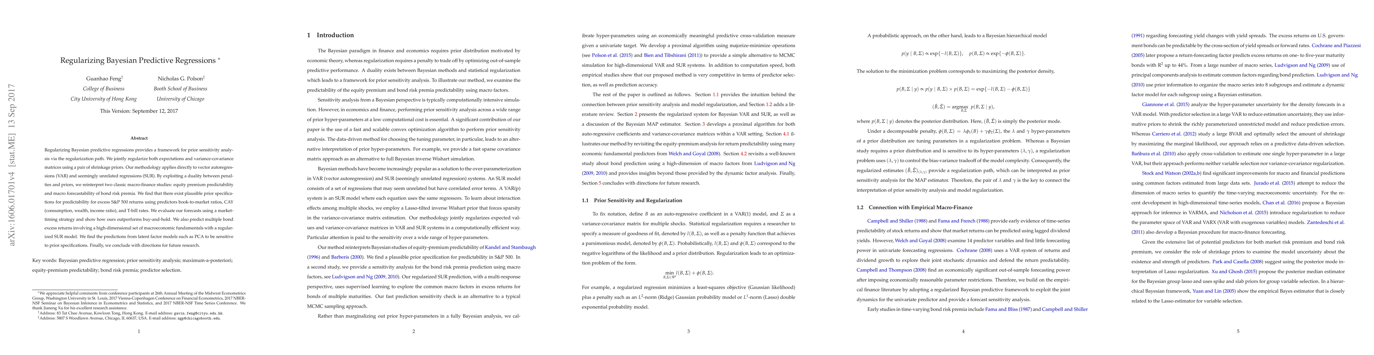 The paper introduces a regularization technique for Bayesian predictive regressions that jointly regularizes both expectations and variance-covariance matrices, providing a novel method for prior sensitivity analysis.