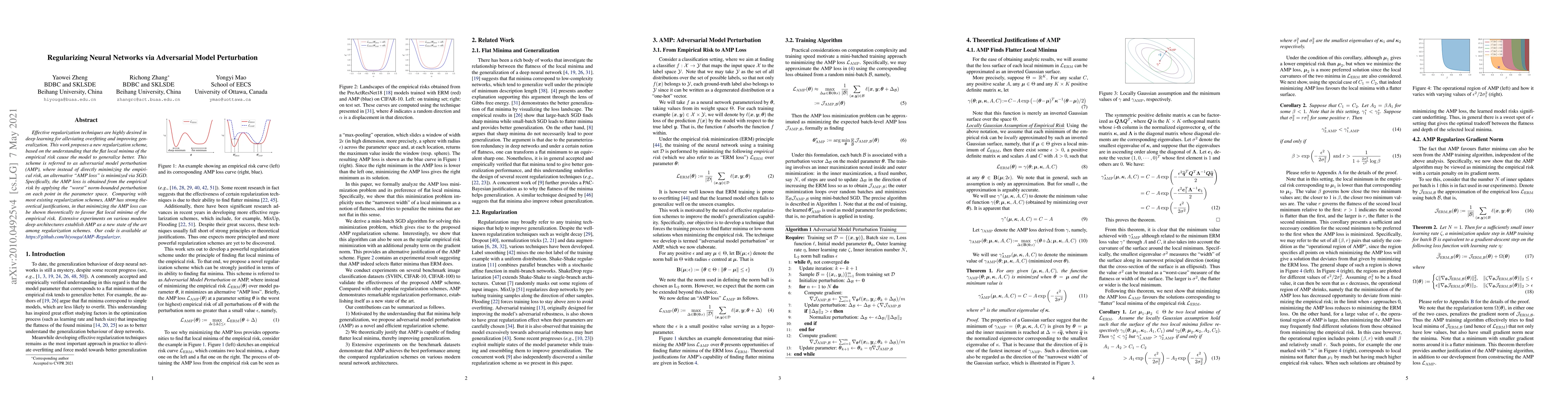 A new regularization technique called adversarial model perturbation (AMP) is proposed to improve generalization in deep learning models, with extensive experiments showing it outperforms existing methods.