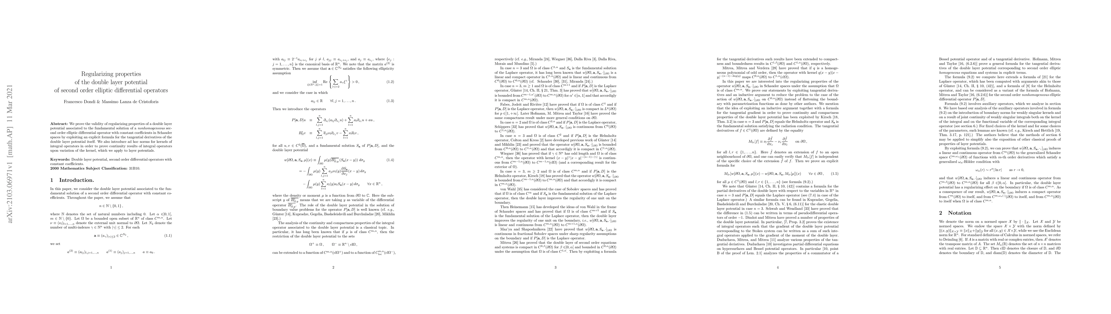 Researchers prove that double layer potentials for nonhomogeneous second order elliptic operators behave smoothly under variation of their kernels, with implications for applications in physics and engineering.