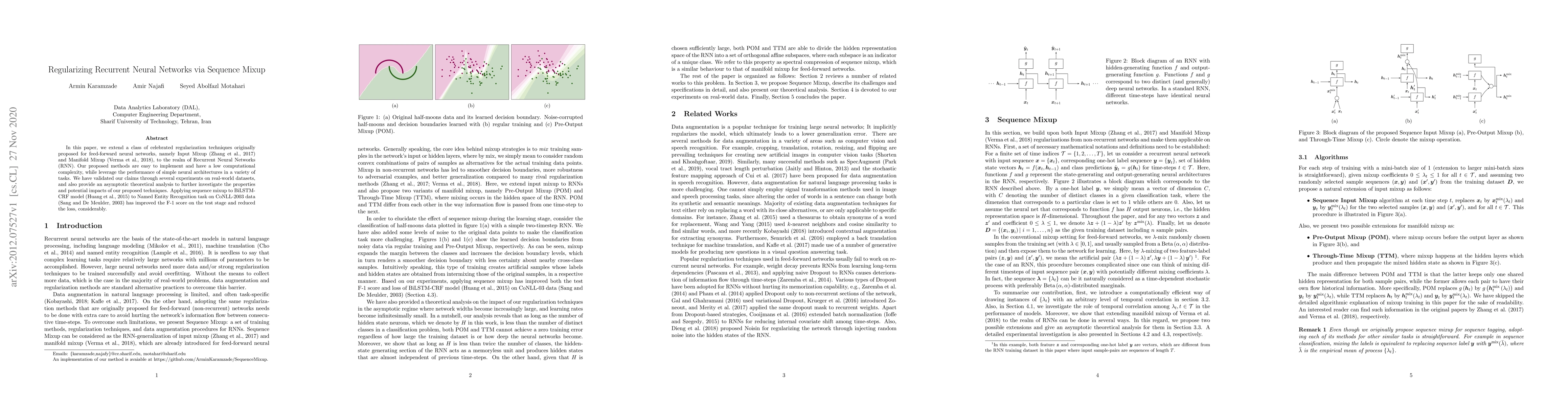 Researchers developed a method to improve Recurrent Neural Networks (RNNs) called sequence mixup, which uses data manipulation techniques to boost performance in tasks like Named Entity Recognition, with notable improvements on the F-1 score and loss.