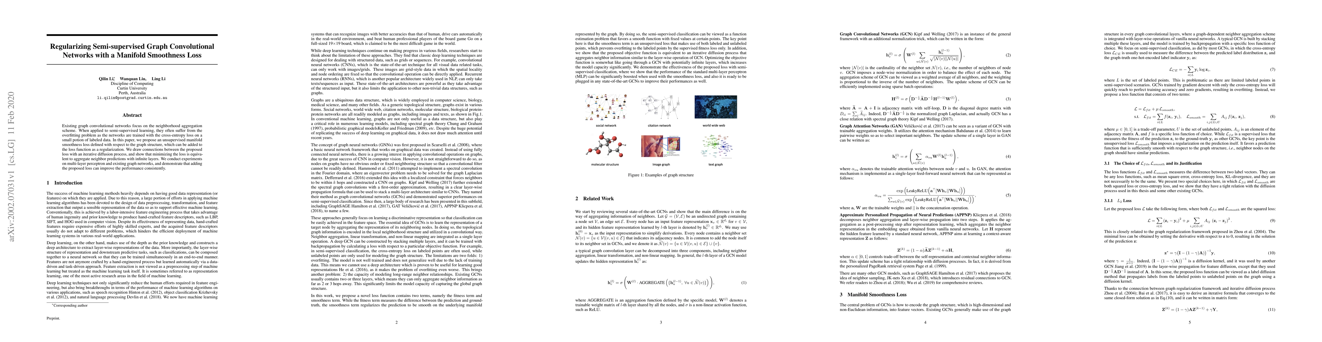 This paper proposes a new regularization technique to improve semi-supervised graph convolutional networks by adding an unsupervised manifold smoothness loss, which improves performance consistently in experiments.