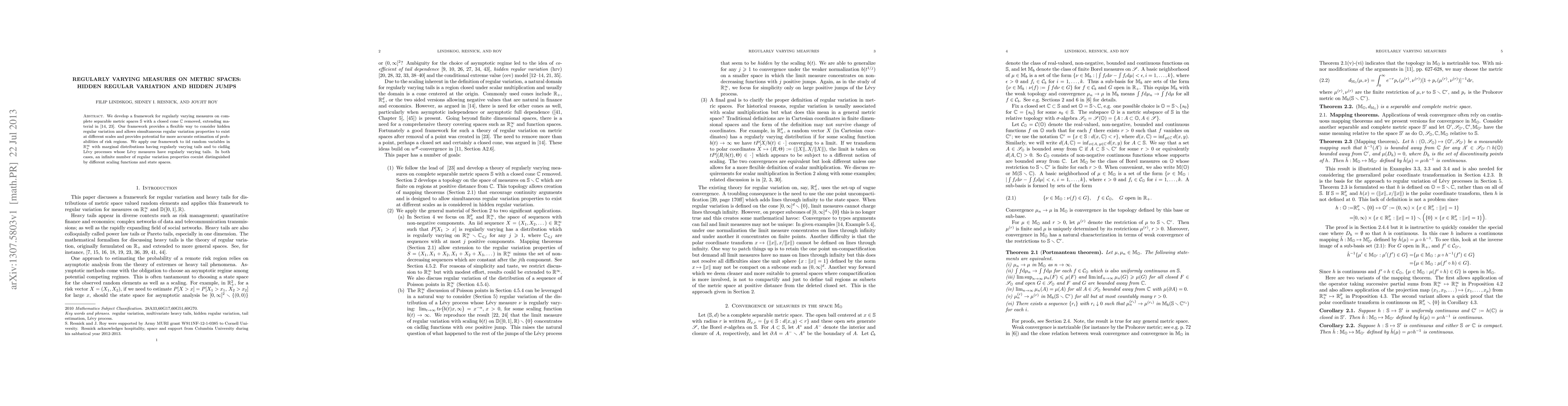 This paper develops a framework for regularly varying measures on complete separable metric spaces, extending previous work to accommodate hidden regular variation and jumps. It provides a method for estimating probabilities of risk regions more accurately by allowing multiple scales of regular variation.