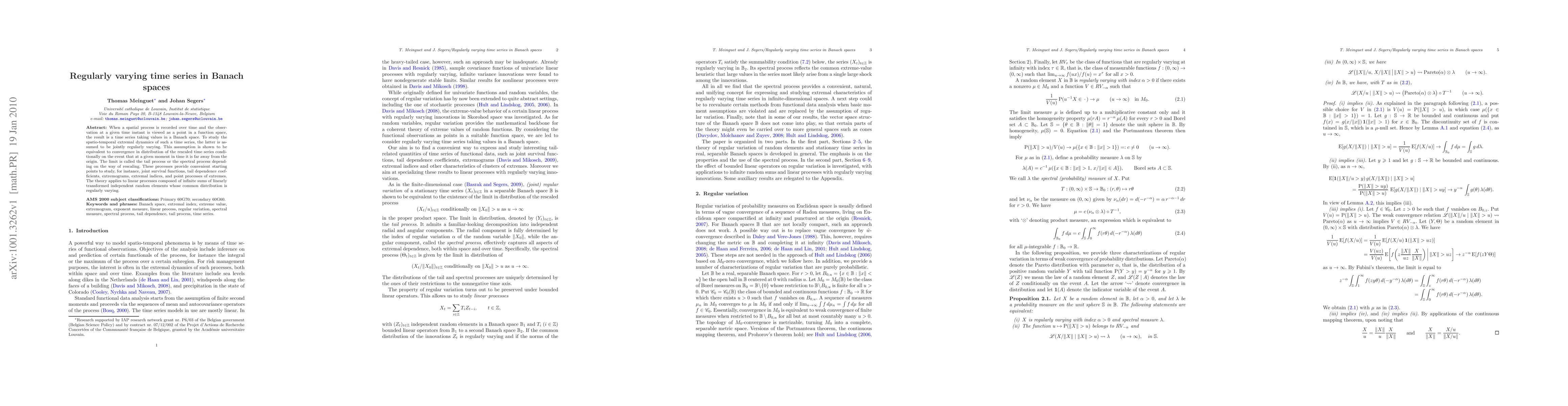 This paper explores time series in Banach spaces that are jointly regularly varying, establishing their equivalence to convergence in distribution of rescaled series. It introduces the tail process and spectral process as limits, which facilitate the study of various extremal statistics and apply to linear processes with regularly varying components.
