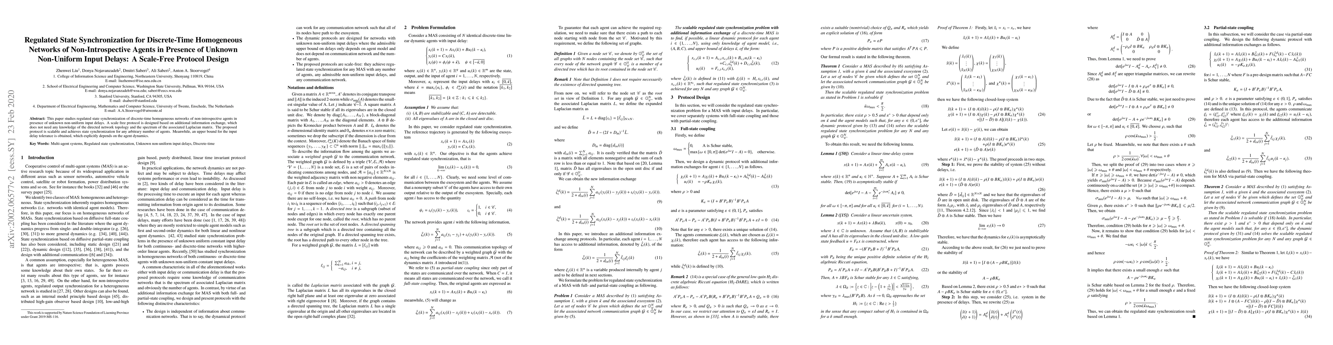 This paper proposes a scale-free protocol for regulated state synchronization in discrete-time homogeneous networks of non-introspective agents with unknown non-uniform input delays. The protocol is scalable and achieves synchronization without requiring knowledge of network topology or Laplacian spectrum.