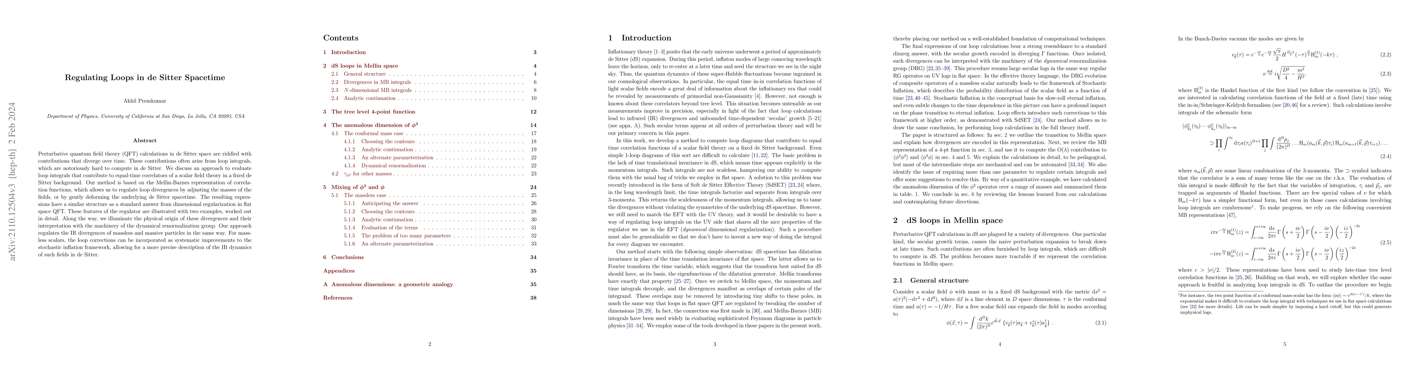 Perturbative quantum field theory (QFT) calculations in de Sitter space are riddled with contributions that diverge over time. These contributions often arise from loop integrals, which are notoriously hard to compute in de Sitter. We discuss an approach to evaluate loop integrals that contribute to equal-time correlators of a scalar field theory in a fixed de Sitter background. Our method is based on the Mellin-Barnes representation of correlation functions, which allows us to regulate loop divergences by adjusting the masses of the fields, or by gently deforming the underlying de Sitter spacetime. The resulting expressions have a similar structure as a standard answer from dimensional regularization in flat space QFT. These features of the regulator are illustrated with two examples, worked out in detail. Along the way, we illuminate the physical origin of these divergences and their interpretation with the machinery of the dynamical renormalization group. Our approach regulates the IR divergences of massless and massive particles in the same way. For massless scalars, the loop corrections can be incorporated as systematic improvements to the stochastic inflation framework, allowing for a more precise description of the IR dynamics of such fields in de Sitter.