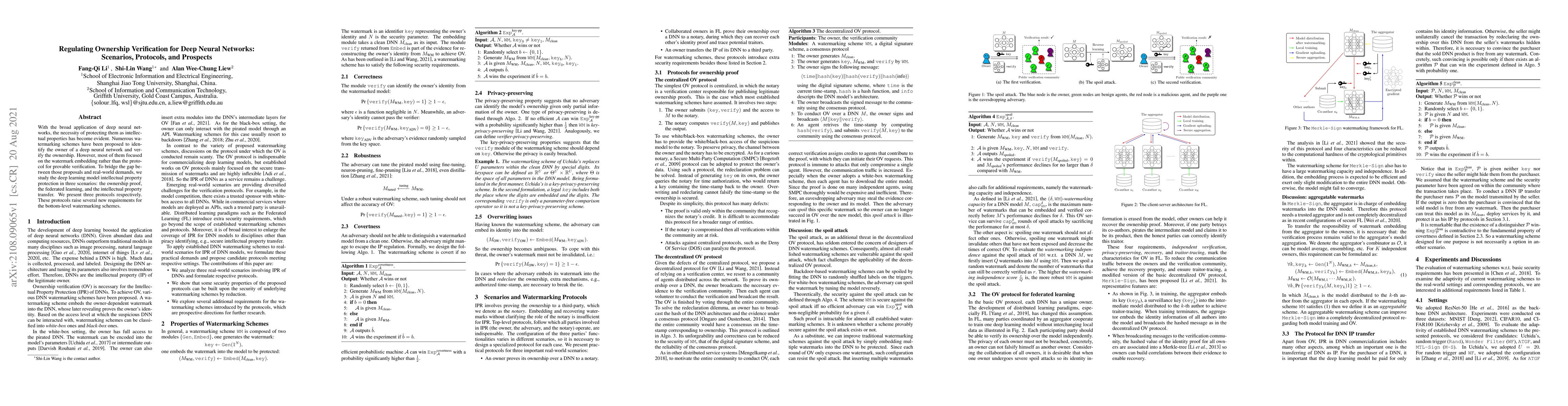 With the broad application of deep neural networks, the necessity of protecting them as intellectual properties has become evident. Numerous watermarking schemes have been proposed to identify the owner of a deep neural network and verify the ownership. However, most of them focused on the watermark embedding rather than the protocol for provable verification. To bridge the gap between those proposals and real-world demands, we study the deep learning model intellectual property protection in three scenarios: the ownership proof, the federated learning, and the intellectual property transfer. We present three protocols respectively. These protocols raise several new requirements for the bottom-level watermarking schemes.