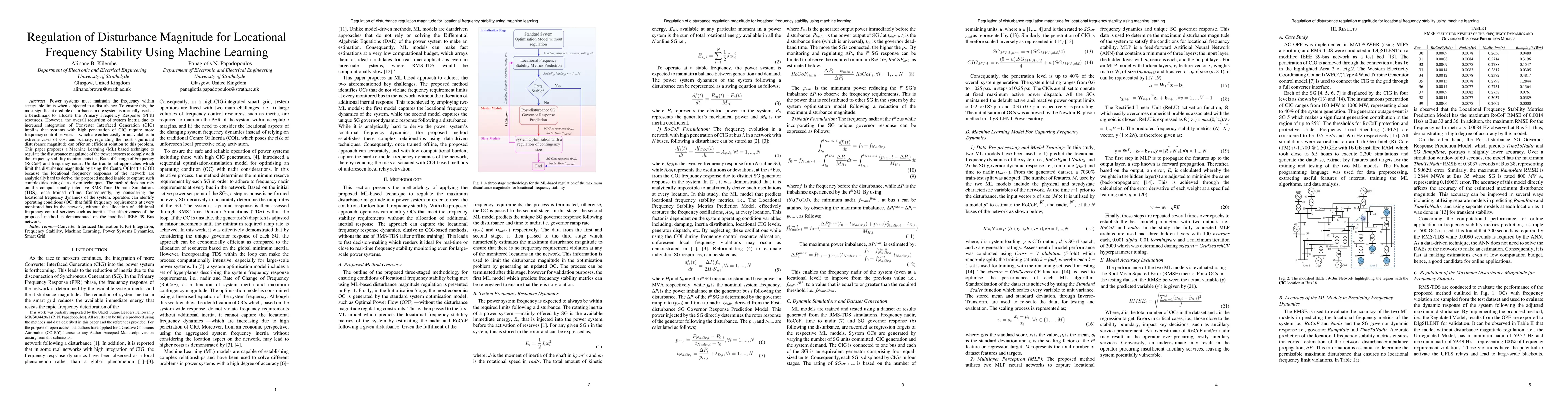 Power systems must maintain the frequency within acceptable limits when subjected to a disturbance. To ensure this, the most significant credible disturbance in the system is normally used as a benchmark to allocate the Primary Frequency Response (PFR) resources. However, the overall reduction of system inertia due to increased integration of Converter Interfaced Generation (CIG) implies that systems with high penetration of CIG require more frequency control services, which are either costly or unavailable. In extreme cases of cost and scarcity, regulating the most significant disturbance magnitude can offer an efficient solution to this problem. This paper proposes a Machine Learning (ML) based technique to regulate the disturbance magnitude of the power system to comply with the frequency stability requirements i.e., Rate of Change of Frequency (RoCoF) and frequency nadir. Unlike traditional approaches which limit the disturbance magnitude by using the Centre Of Inertia (COI) because the locational frequency responses of the network are analytically hard to derive, the proposed method is able to capture such complexities using data-driven techniques. The method does not rely on the computationally intensive RMS-Time Domain Simulations (TDS), once trained offline. Consequently, by considering the locational frequency dynamics of the system, operators can identify operating conditions (OC) that fulfil frequency requirements at every monitored bus in the network, without the allocation of additional frequency control services such as inertia. The effectiveness of the proposed method is demonstrated on the modified IEEE 39 Bus network.