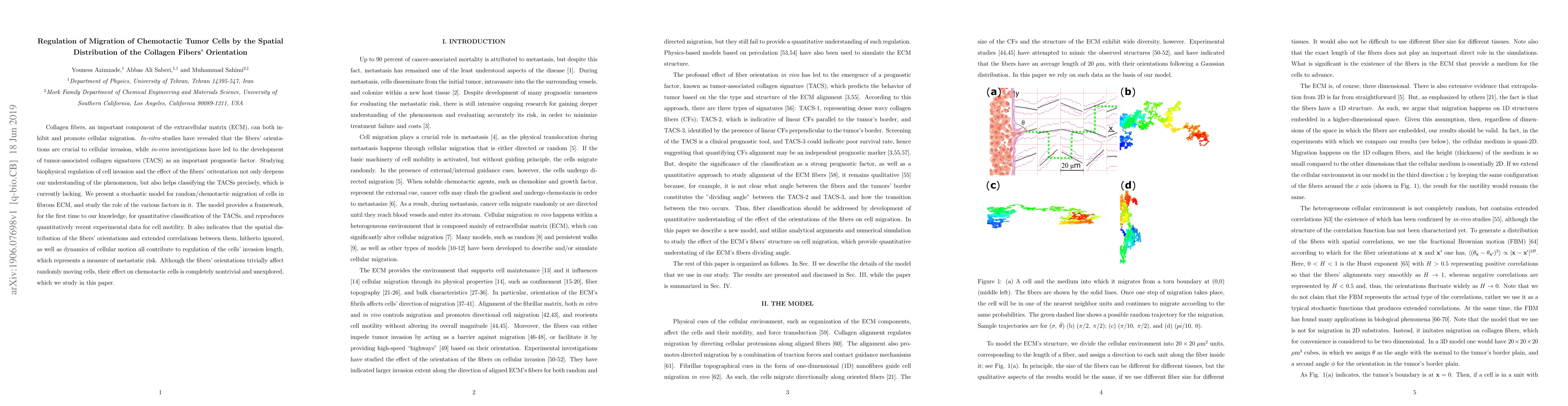 This paper presents a stochastic model to study the regulation of chemotactic tumor cell migration by collagen fiber orientation in the extracellular matrix, revealing that spatial distribution and correlations of fiber orientations significantly influence cell invasion, providing a framework for classifying tumor-associated collagen signatures.