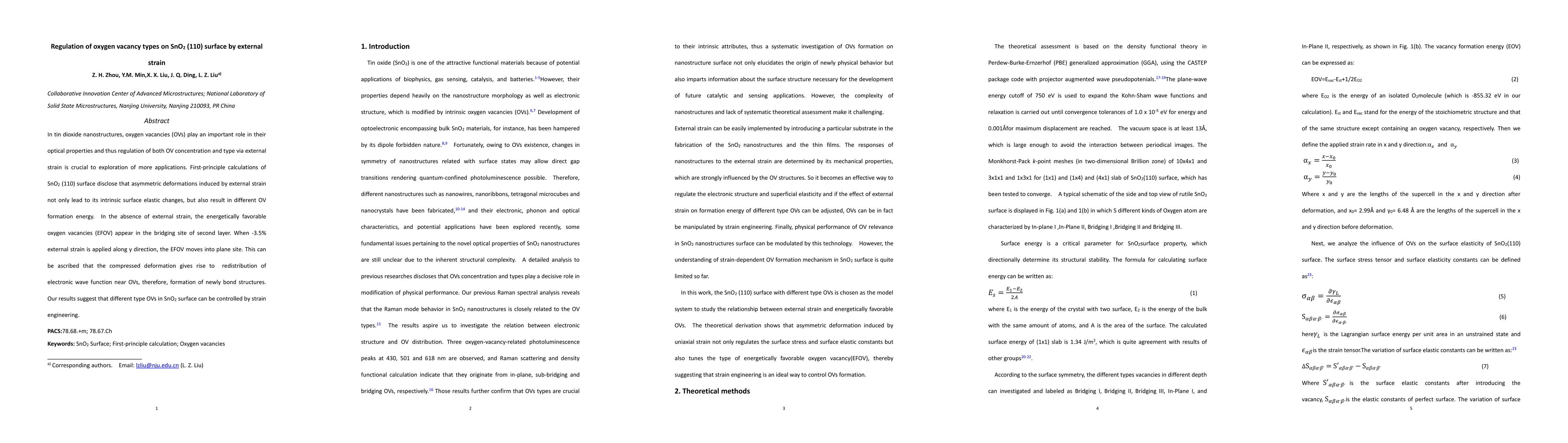 In tin dioxide nanostructures, oxygen vacancies (OVs) play an important role in their optical properties and thus regulation of both OV concentration and type via external strain is crucial to exploration of more applications. First-principle calculations of SnO2 (110) surface disclose that asymmetric deformations induced by external strain not only lead to its intrinsic surface elastic changes, but also result in different OV formation energy. In the absence of external strain, the energetically favorable oxygen vacancies (EFOV) appear in the bridging site of second layer. When -3.5% external strain is applied along y direction, the EFOV moves into plane site. This can be ascribed that the compressed deformation gives rise to redistribution of electronic wave function near OVs, therefore, formation of newly bond structures. Our results suggest that different type OVs in SnO2 surface can be controlled by strain engineering.