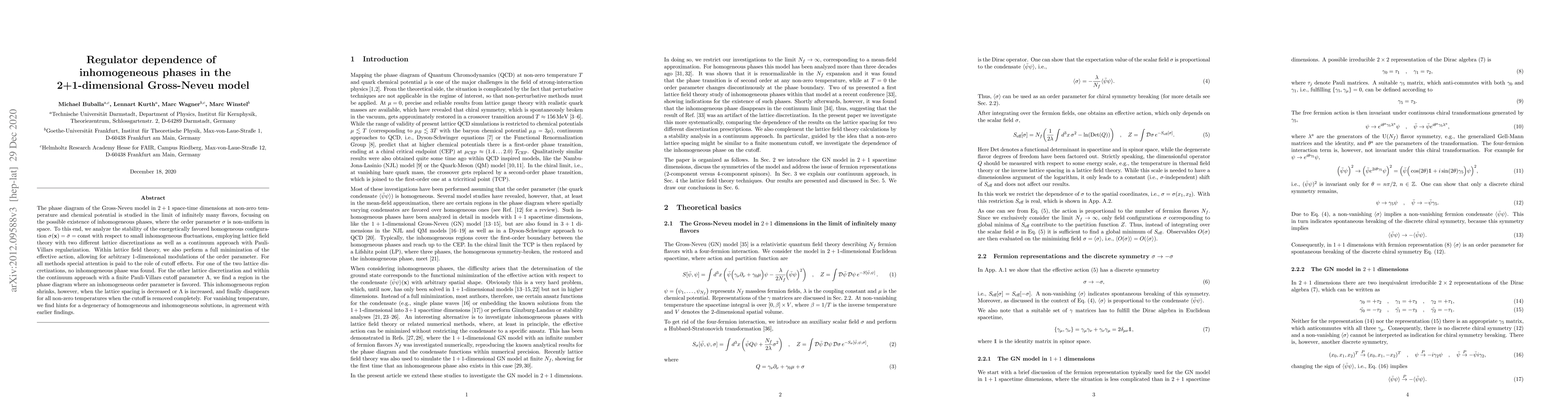 This paper investigates the phase diagram of the 2+1-dimensional Gross-Neveu model at non-zero temperature and chemical potential, focusing on the potential existence of inhomogeneous phases. The study reveals that while one lattice discretization finds no inhomogeneous phase, another does, but this phase is cutoff-dependent and vanishes at zero temperature.