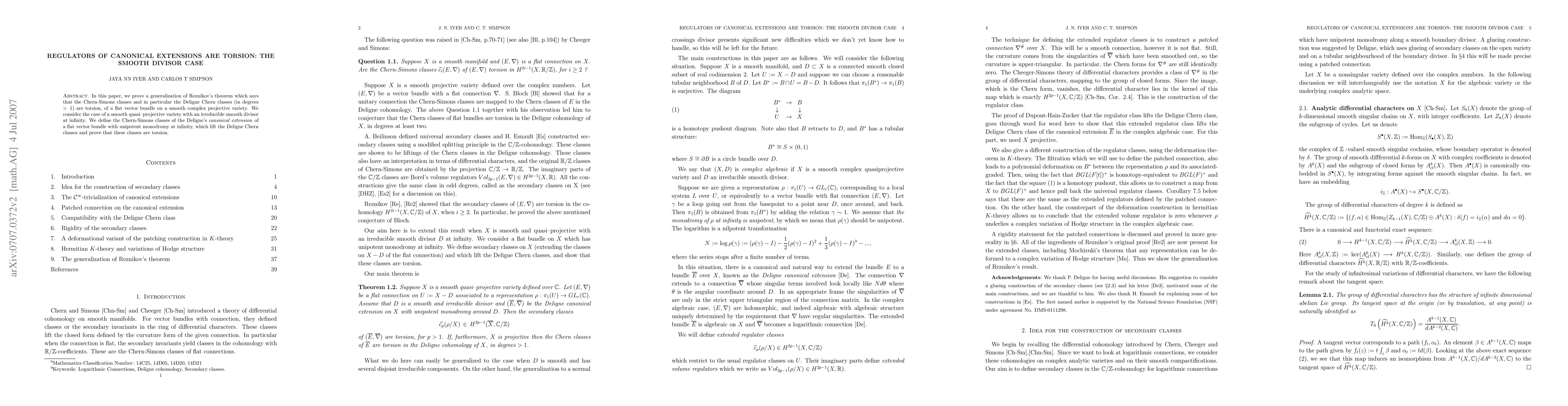 This paper generalizes Reznikov's theorem to smooth quasi-projective varieties with a smooth divisor at infinity, proving that the Chern-Simons classes of Deligne's canonical extension for flat vector bundles with unipotent monodromy are torsion.