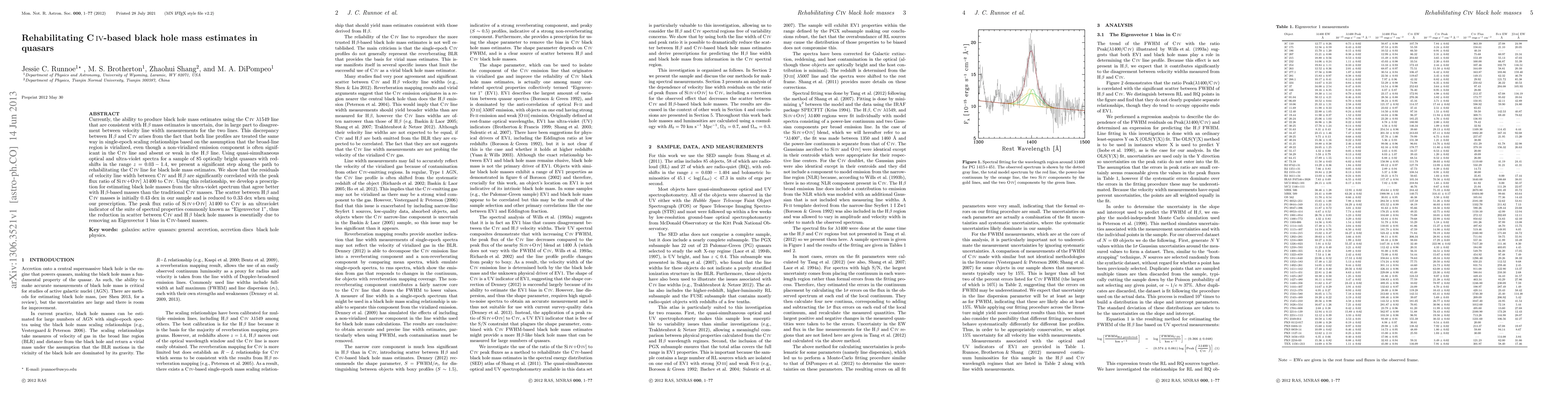 This paper addresses the inconsistency in black hole mass estimates using the CIV line compared to Hb, attributing discrepancies to non-virialized emission components in CIV. By analyzing spectra from 85 quasars, the authors propose a new method to estimate black hole masses from ultraviolet spectra, reducing the scatter between CIV and Hb mass estimates from 0.43 to 0.33 dex by accounting for "Eigenvector 1" bias.