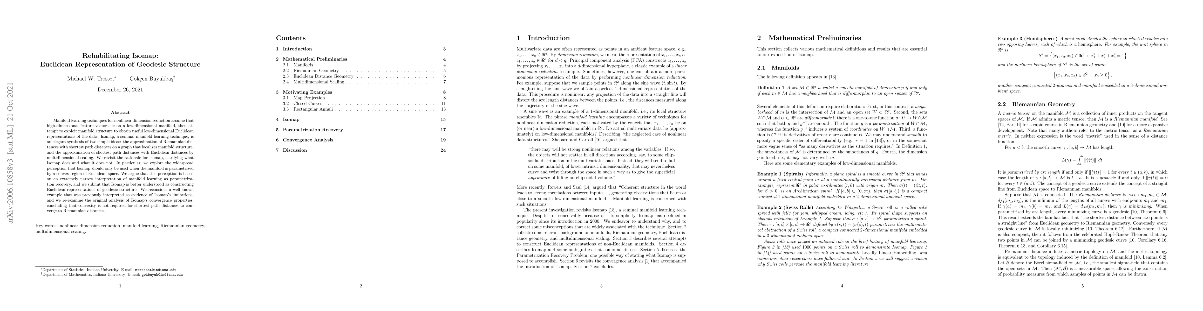 This paper revisits the Isomap technique for nonlinear dimension reduction, arguing that it constructs Euclidean representations of the geodesic structure rather than merely parametrizing manifolds. It refutes the misconception that Isomap is limited to convex regions, emphasizing its broader applicability in manifold learning.
