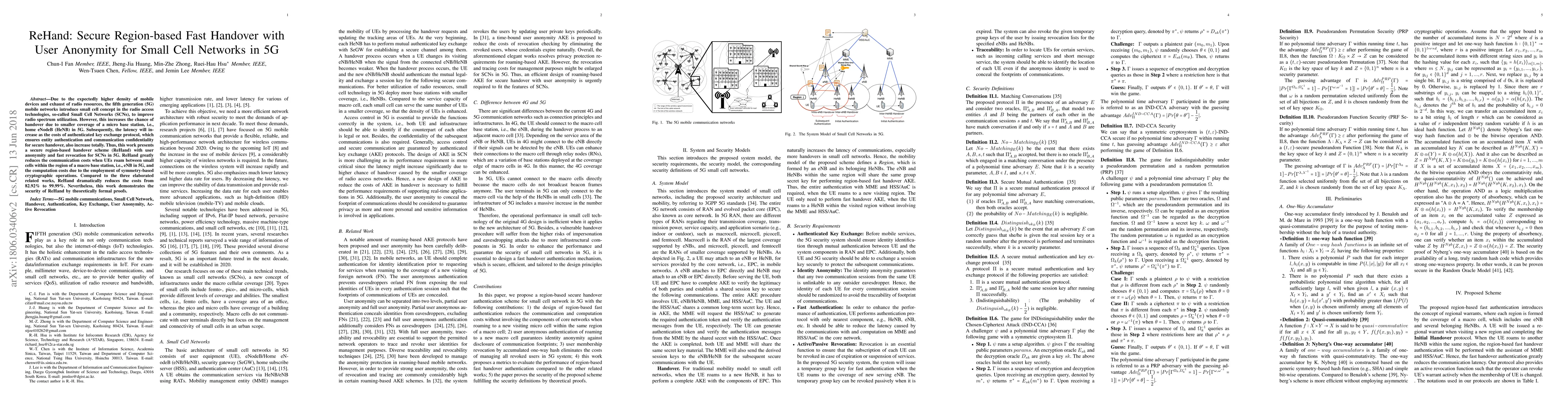 The paper introduces ReHand, a secure region-based handover scheme for 5G Small Cell Networks that enhances user anonymity and reduces handover latency. It significantly lowers communication and computation costs by employing symmetry-based cryptographic operations, achieving up to 99.99% cost reduction compared to related works.